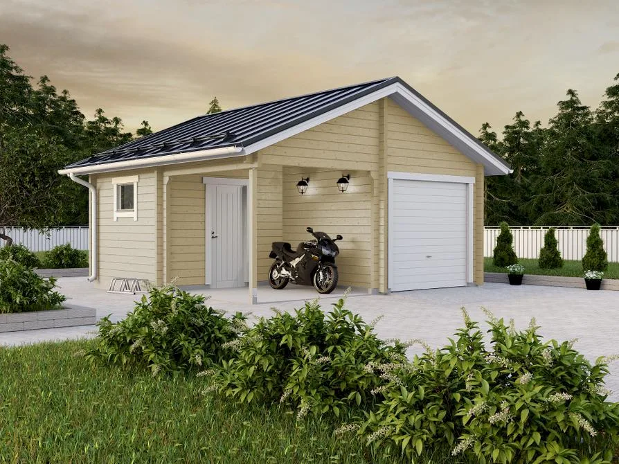 Suuren suosion saanut Autotalli / Katos, jossa autotalli, katos sekä 8,7 m² varastotila omalla sisäänkäynnillä.
