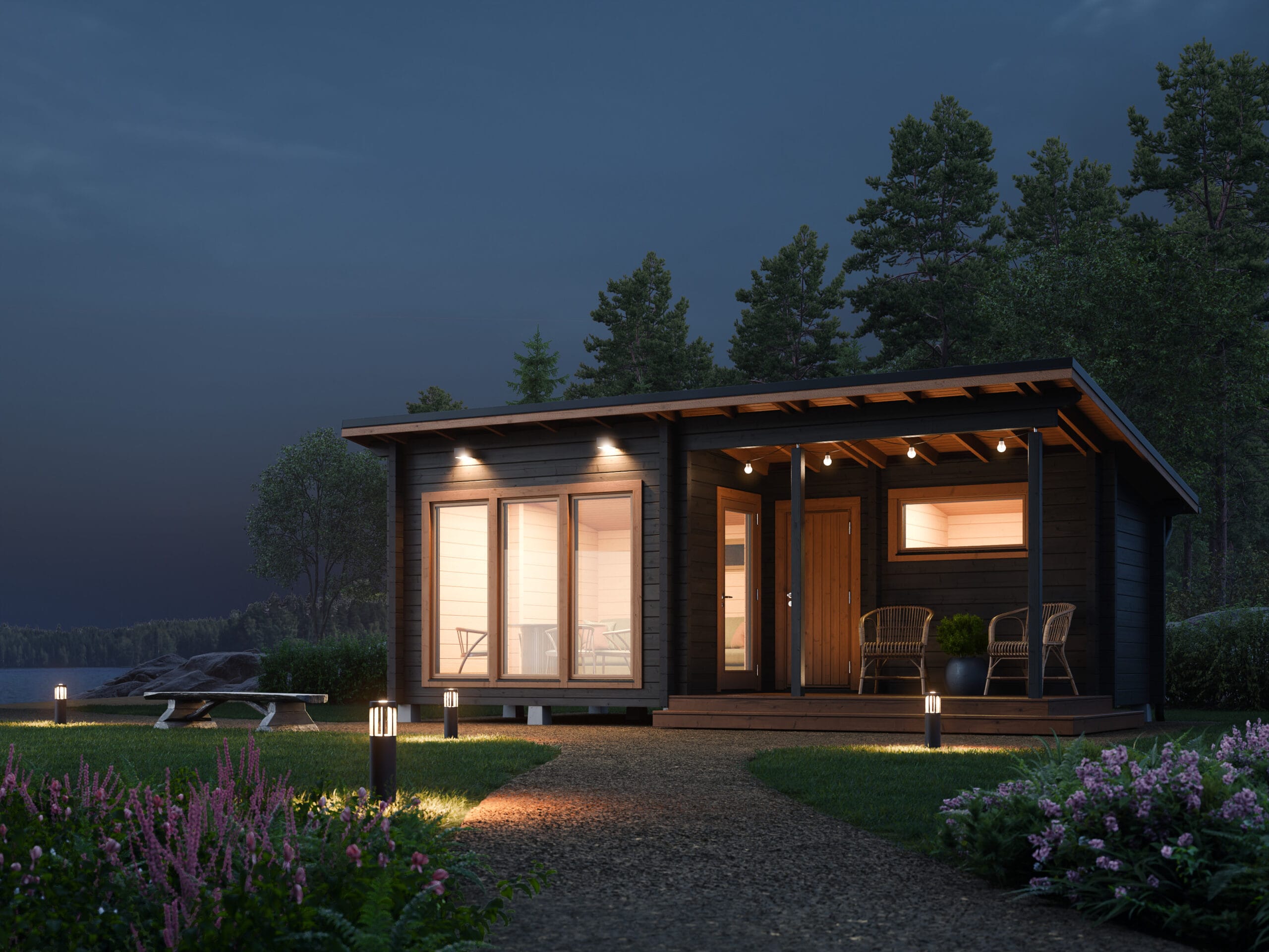 Tämä Teuva-Sauna 29 -mallin pukuhuoneellinen versio on suunniteltu sinulle, joka arvostat selkeää tilajakoa, käyttömukavuutta ja viimeisteltyä ulkonäköä. Moderni pulpettikatto, suuret ikkunat ja huolella suunniteltu pohjaratkaisu tekevät tästä pihasaunasta erinomaisen valinnan niin mökille kuin omakotitalon pihaan.