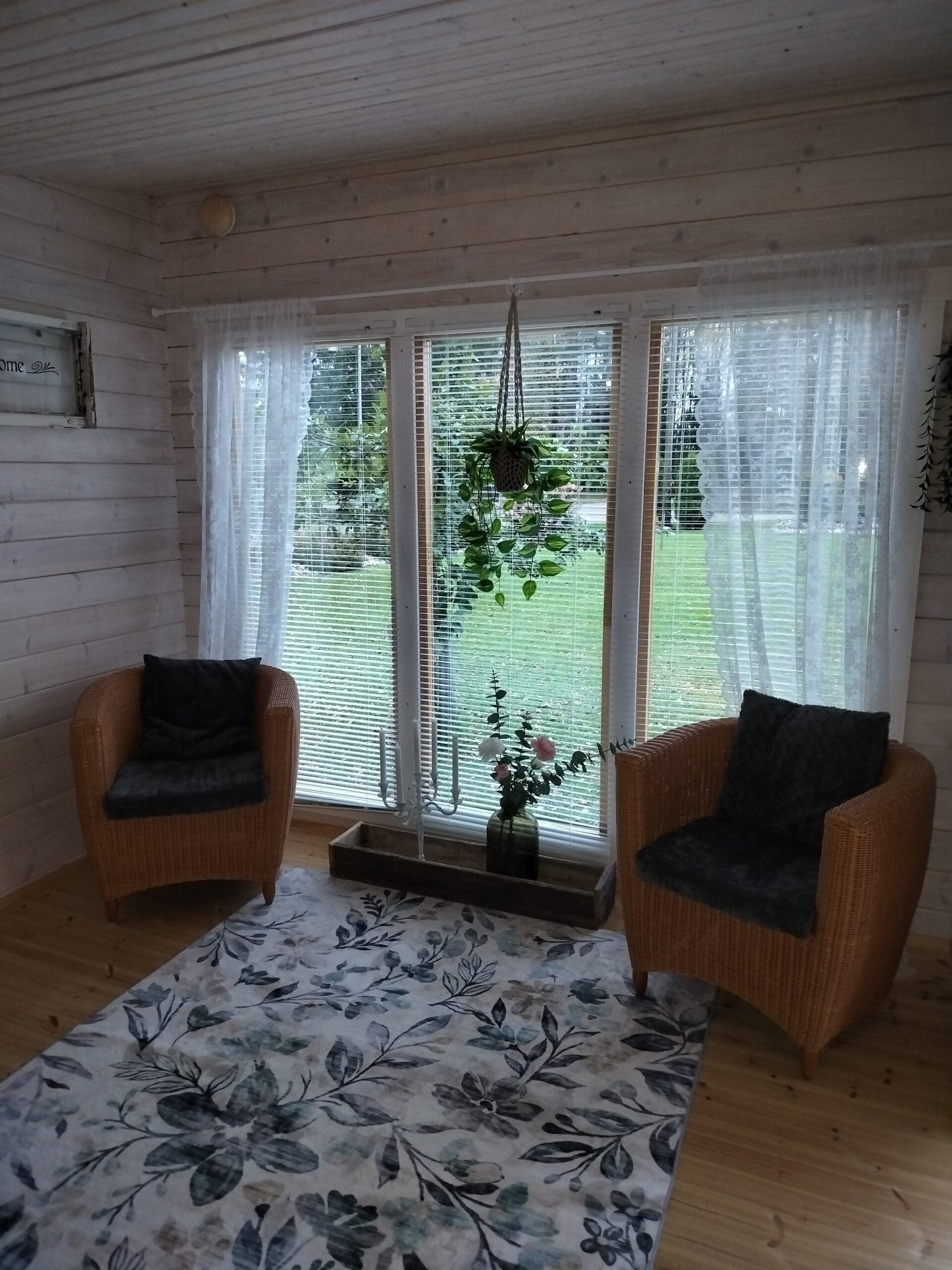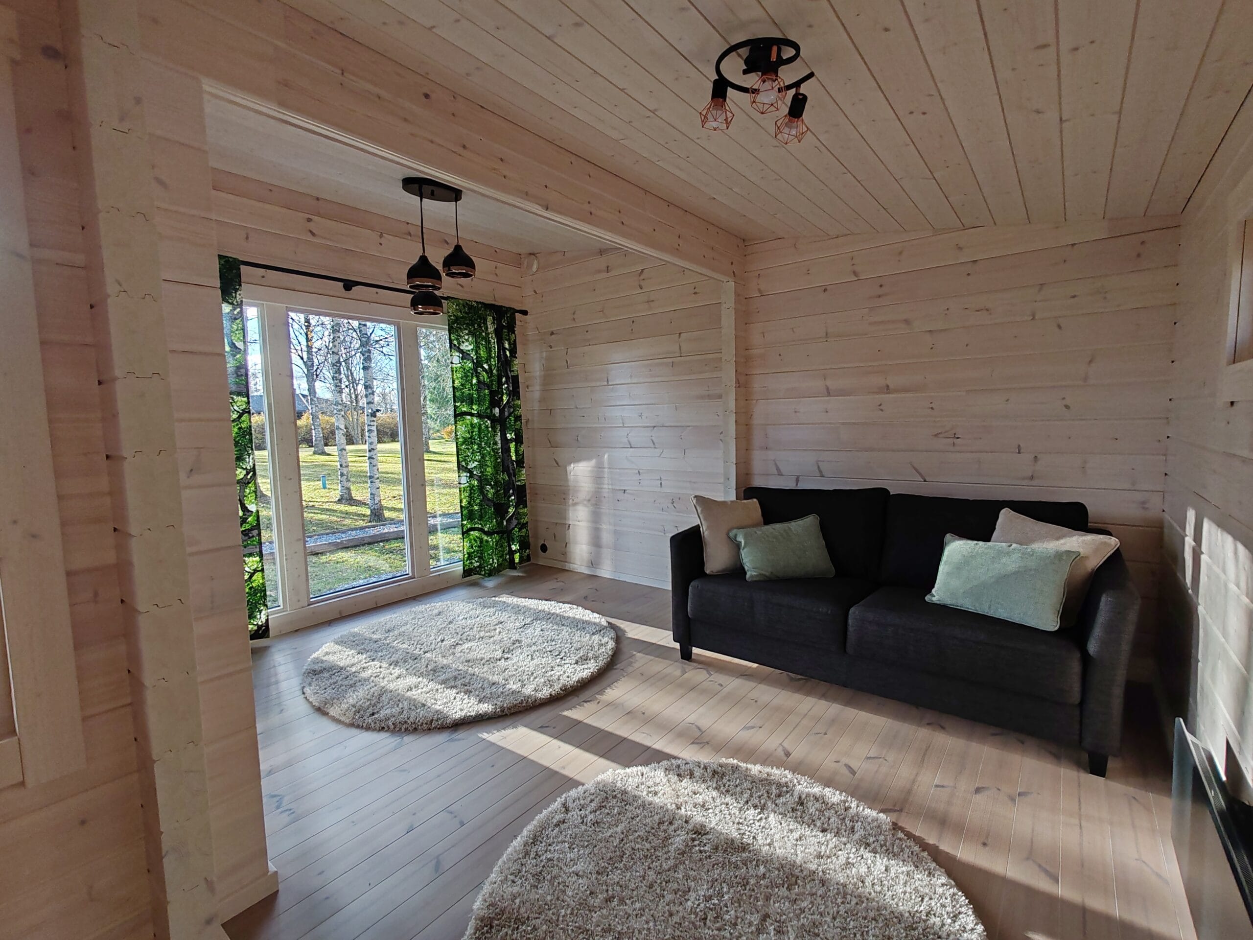 Kesä tekee pihasaunasta pihan keskipisteen: löylyt, vilvoittelu ja grilli yhdistyvät luontevasti. Syksyllä verannan kevyt rimoitus tai lasitus tuo suojaa tuulelta ja sateelta, joten oleskelu jatkuu pitkälle pimeään. Talvella erillinen pukuhuone on kullanarvoinen – lämpötilanvaihtelut loivenevat, kuivaus onnistuu ja löylyhetki pysyy miellyttävänä paukkupakkasillakin. Keväällä Teuva 32/2 herää ensimmäisenä: verannalle on helppo kattaa kausi käyntiin, ja tupa täyttyy valosta, vaikka ulkona olisi vielä yöpakkasia.