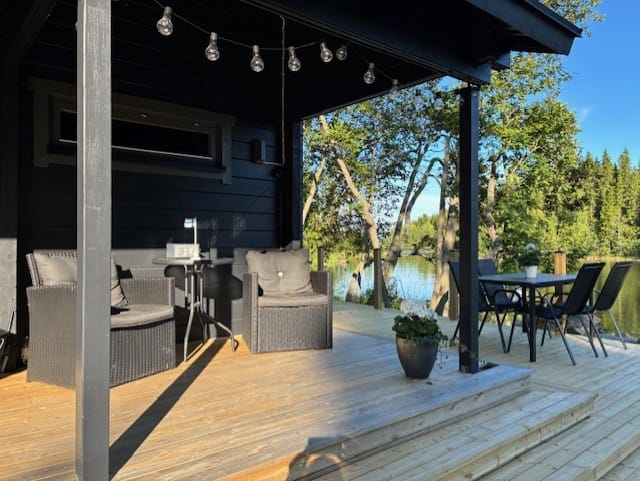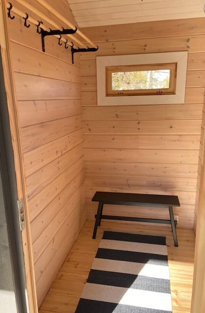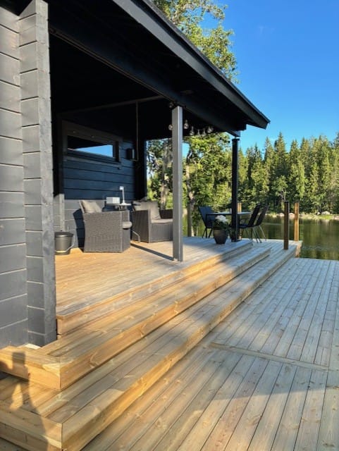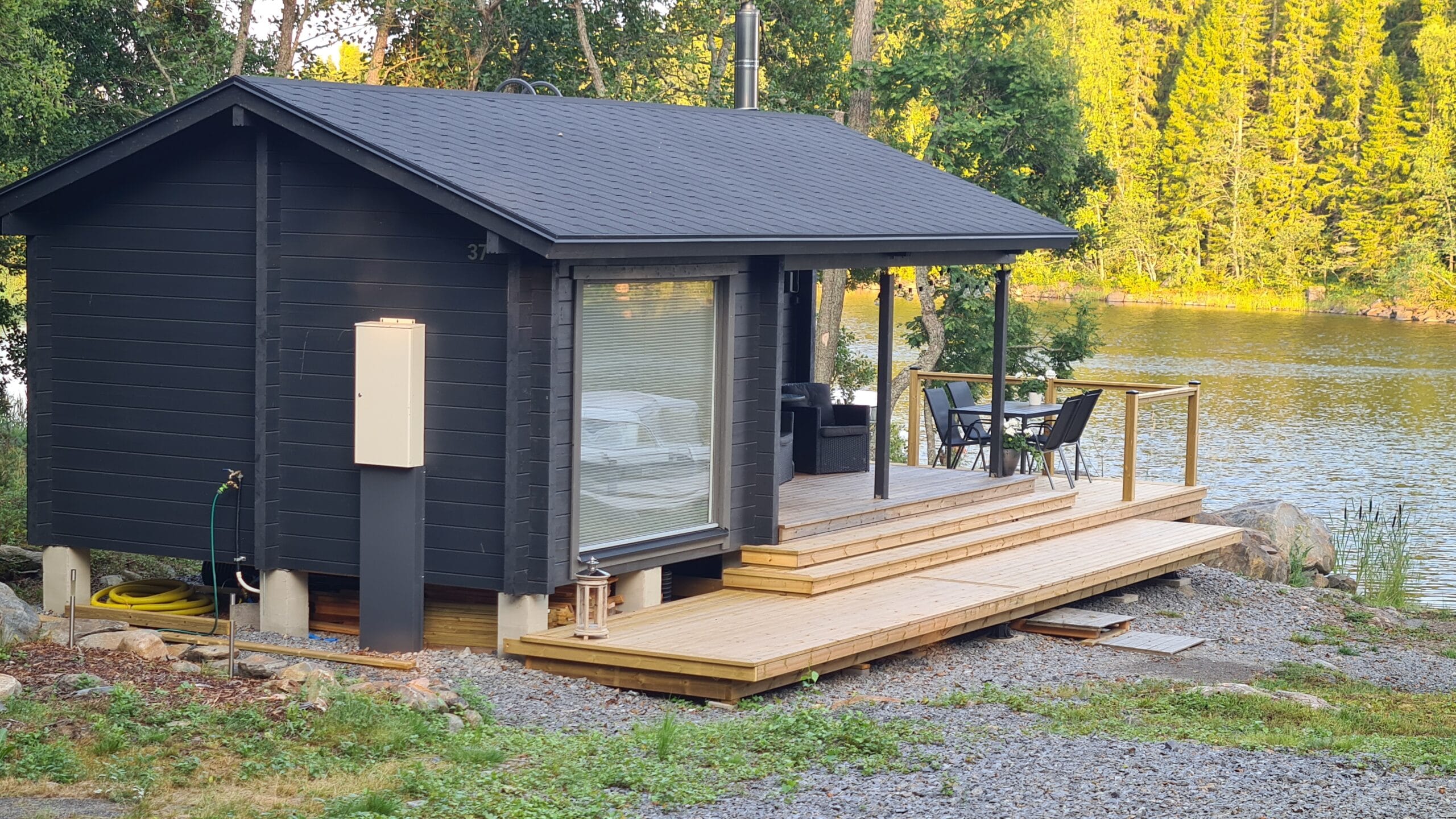 Teuva 32 pihasauna on saatavana myös perinteisellä harjakatolla, jossa on tilavan tuvan lisäksi on sauna. Katettu veranta yhdistää tuvan ja saunaosaston toisiinsa. Tuvan iso ikkuna auttaa luonnollisen valon pääsyn sisään ja tuo samalla lisää tilan tunnetta tupaan. Katettu veranta on helppo lasittaa jälkikäteen, jos rakennukseen halutaan lisää oleskelutilaa. Tämä upea pihasauna sopii erinomaisesti ulkosaunaksi, rantasaunaksi, mökkisaunaksi ja tarjoaa samalla lisämajoitustilan vieraille.
